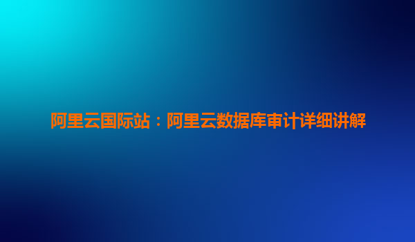 阿里云国际站:阿里云数据库审计详细讲解