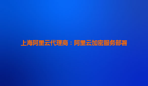 上海阿里云代理商:阿里云加密服务部署