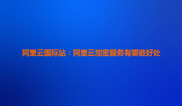 阿里云国际站:阿里云加密服务有哪些好处