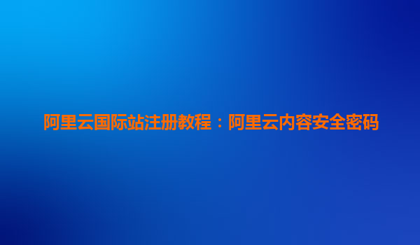 阿里云国际站注册教程:阿里云内容安全密码