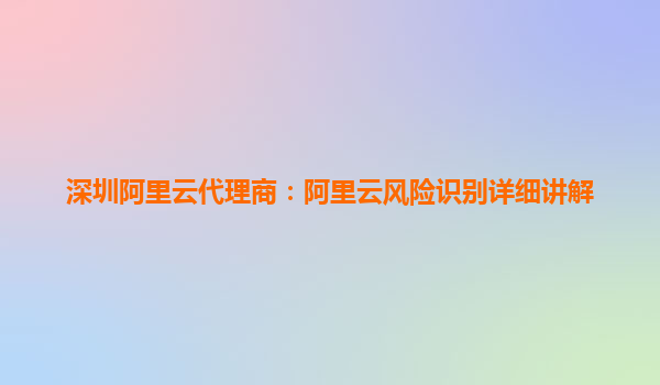 深圳阿里云代理商:阿里云风险识别详细讲解