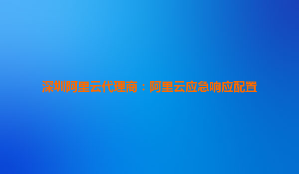 阿里云应急响应配置:深圳阿里云代理商的优势与保障