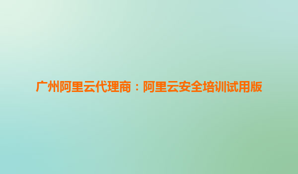 广州阿里云代理商:阿里云安全培训试用版