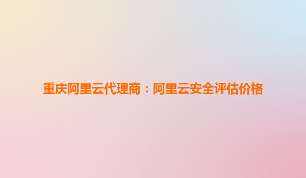 重庆阿里云代理商:阿里云安全评估价格与优势分析