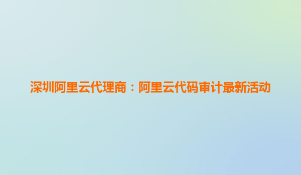 作为深圳地区的阿里云代理商,我们荣幸地向您介绍阿里云代码审计的最新活动。