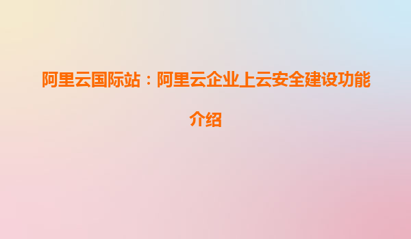 阿里云国际站:阿里云企业上云安全建设功能介绍