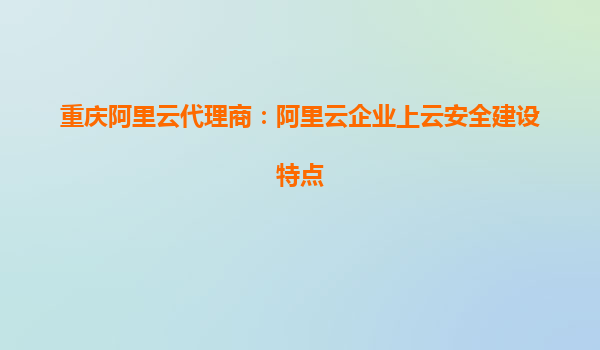 重庆阿里云代理商:阿里云企业上云安全建设特点