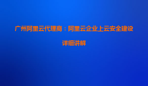 广州阿里云代理商:阿里云企业上云安全建设详细讲解