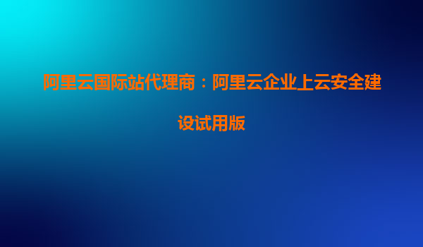阿里云国际站代理商:阿里云企业上云安全建设试用版