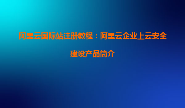 阿里云国际站注册教程:阿里云企业上云安全建设产品简介