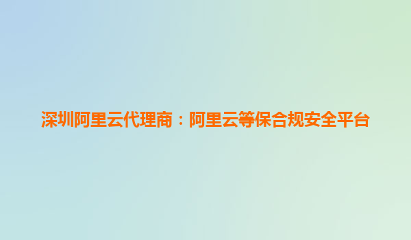 深圳阿里云代理商:阿里云等保合规安全平台