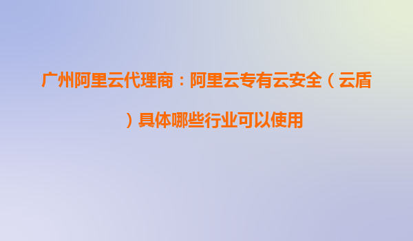 广州阿里云代理商:阿里云专有云安全(云盾)在各行业的应用