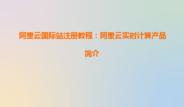 阿里云国际站注册教程及实时计算产品简介