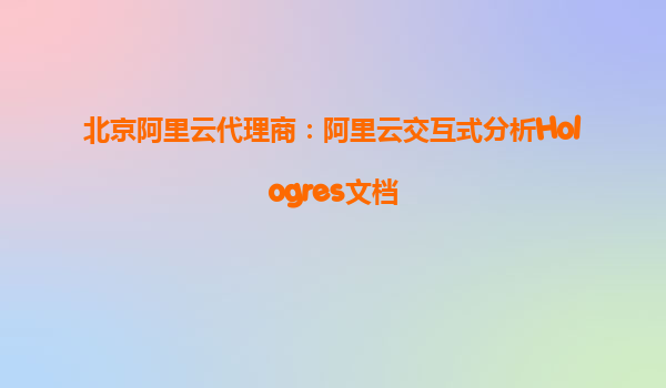 北京阿里云代理商:阿里云交互式分析Hologres深度解析