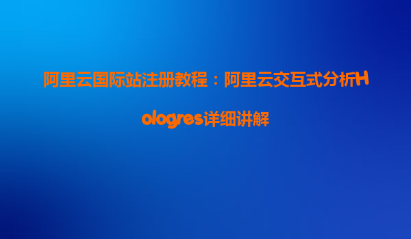 阿里云国际站注册教程:阿里云交互式分析Hologres详细讲解