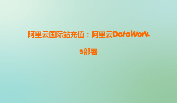 阿里云国际站充值:阿里云DataWorks部署