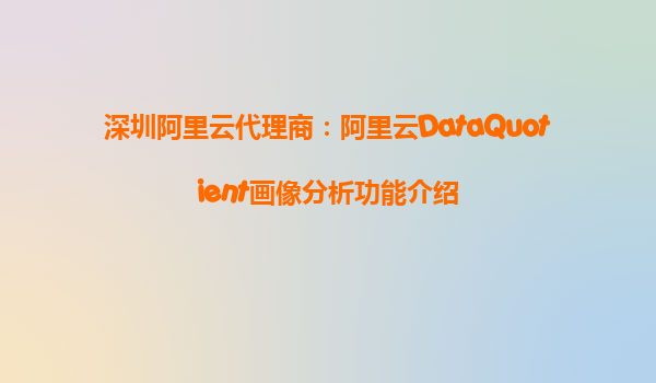 深圳阿里云代理商:阿里云DataQuotient画像分析功能介绍