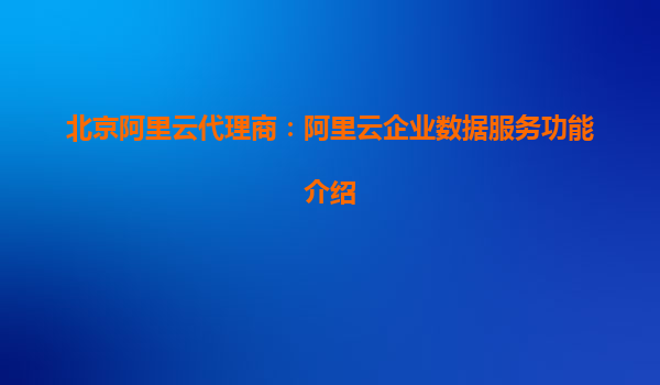 北京阿里云代理商:阿里云企业数据服务功能介绍