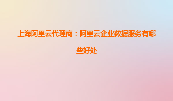 上海阿里云代理商:阿里云企业数据服务的好处