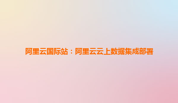 阿里云国际站:阿里云云上数据集成部署