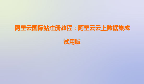 阿里云国际站注册教程:阿里云云上数据集成试用版