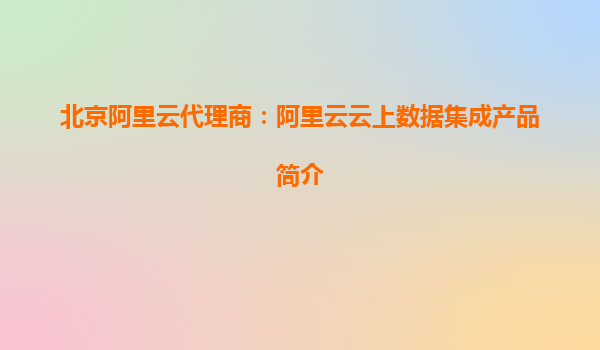 北京阿里云代理商:阿里云云上数据集成产品简介