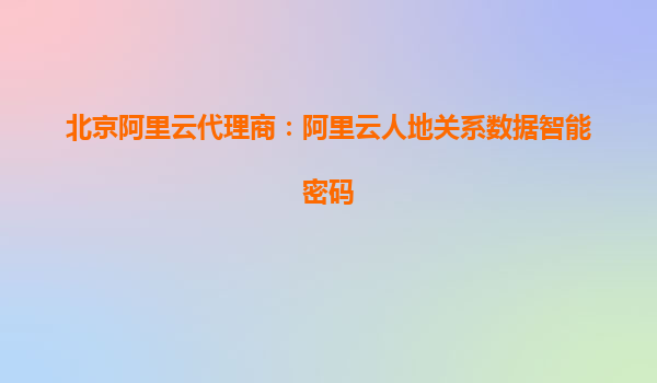 北京阿里云代理商:阿里云人地关系数据智能密码
