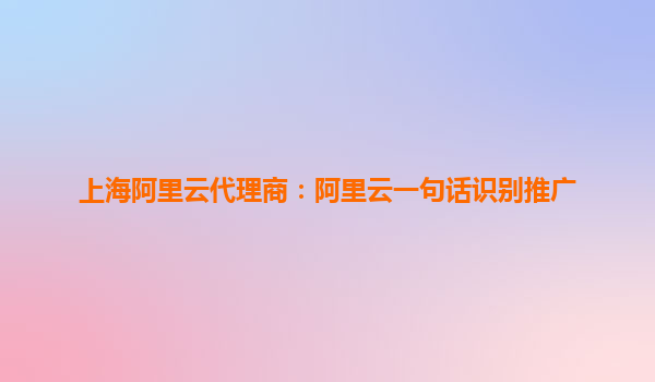 上海阿里云代理商:阿里云一句话识别推广