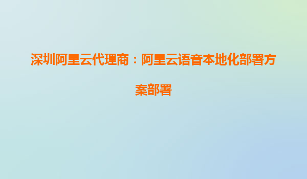 深圳阿里云代理商:阿里云语音本地化部署方案部署