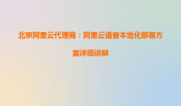 北京阿里云代理商:阿里云语音本地化部署方案详细讲解