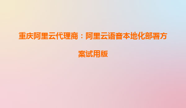 重庆阿里云代理商:阿里云语音本地化部署方案试用版