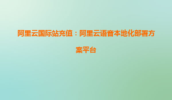 阿里云国际站充值:阿里云语音本地化部署方案平台