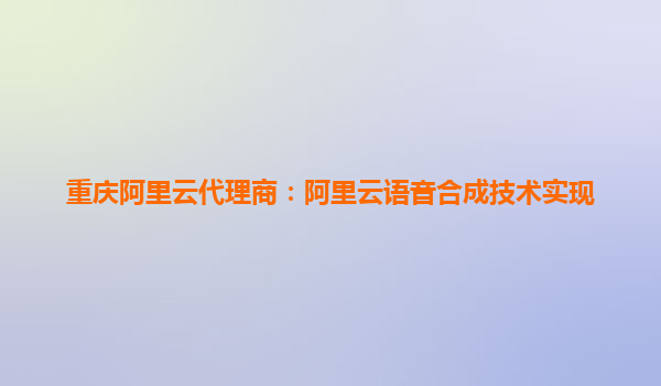 重庆阿里云代理商:阿里云语音合成技术实现