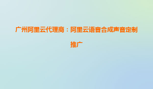 广州阿里云代理商:阿里云语音合成声音定制推广