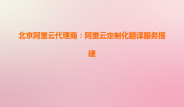 北京阿里云代理商:阿里云定制化翻译服务搭建