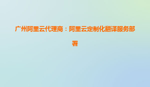 广州阿里云代理商:阿里云定制化翻译服务部署