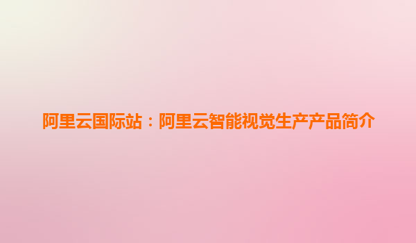 阿里云国际站:阿里云智能视觉生产产品简介