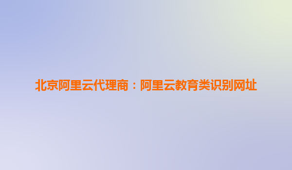 北京阿里云代理商:阿里云教育类识别网址