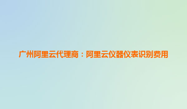 广州阿里云代理商:阿里云仪器仪表识别费用