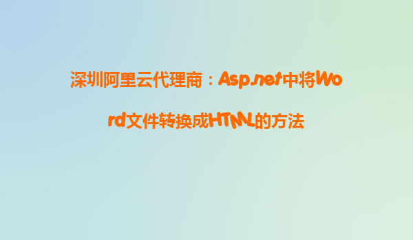 深圳阿里云代理商:Asp.net中将Word文件转换成HTML的方法