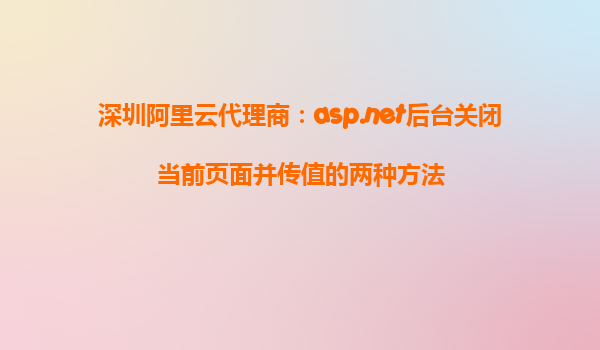 深圳阿里云代理商:ASP.NET后台关闭当前页面并传值的两种方法