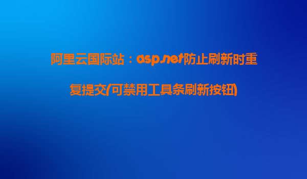 在开发ASP.NET应用程序时,避免重复提交表单数据是一个常见的问题。用户在操作过程中如果不小心刷新页面或重复提交按钮,可能会导致相同数据被多次提交,从而带来数据冗余和性能问题。为了解决这一问题,本文将介绍如何通过禁用工具条刷新按钮来防止刷新时的重复提交,并结合阿里云的优势,探讨如何利用阿里云国际站提供的技术支持来提高ASP.NET应用的稳定性和用户体验。