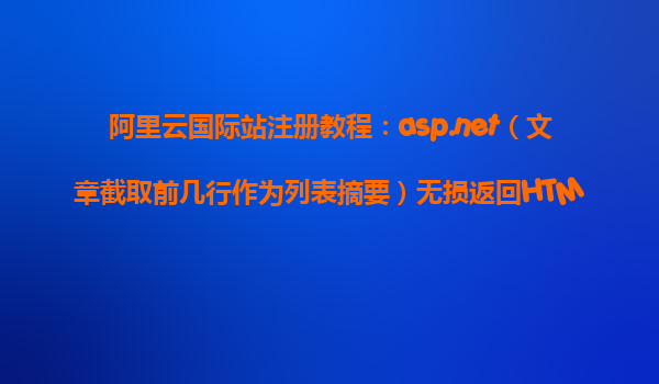 阿里云国际站注册教程:ASP.NET
