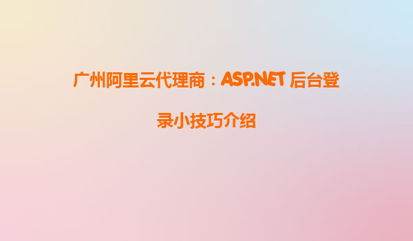 广州阿里云代理商:ASP.NET 后台登录小技巧介绍