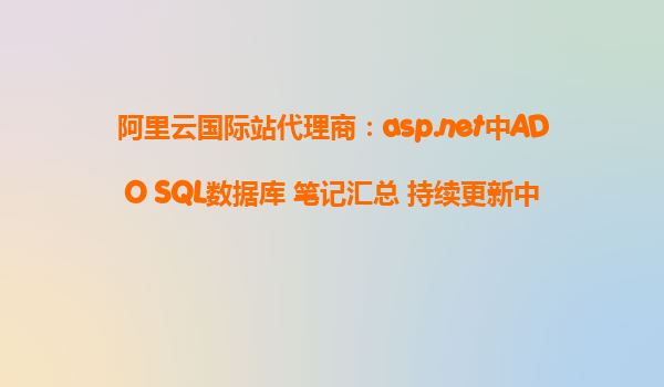 阿里云国际站代理商:ASP.NET中ADO SQL数据库笔记汇总(持续更新中)