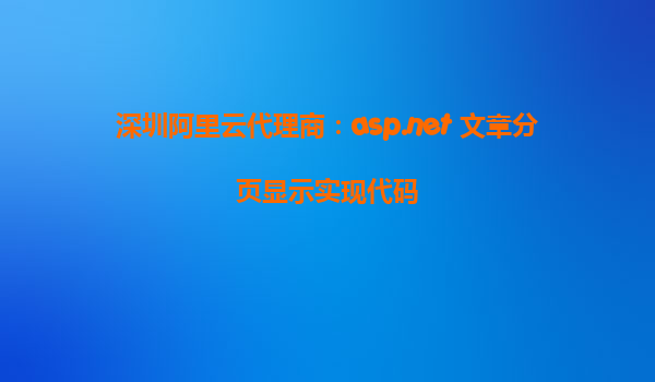 深圳阿里云代理商:asp.net 文章分页显示实现代码