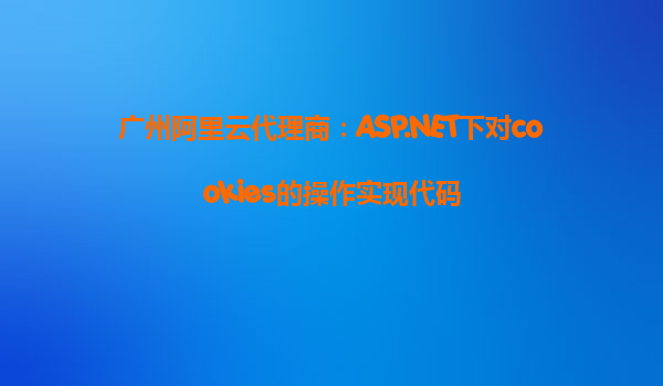 广州阿里云代理商:ASP.NET下对Cookies的操作实现代码