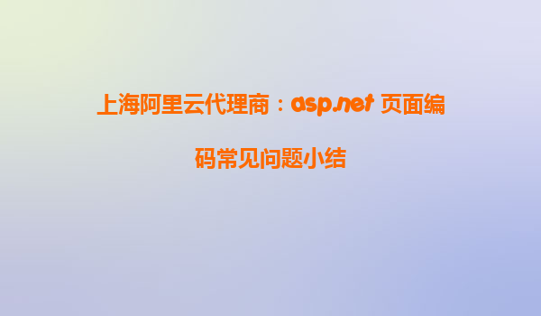 上海阿里云代理商:ASP.NET 页面编码常见问题小结
