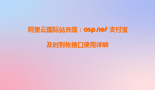 阿里云国际站充值:ASP.NET 支付宝及时到帐接口使用详解
