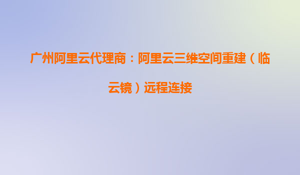 广州阿里云代理商:阿里云三维空间重建(临云镜)远程连接应用解析